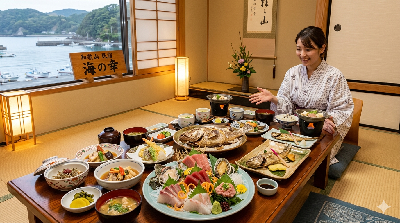 新鮮な海の幸はもちろん、和歌山ならではのブランド食材を惜しみなく提供してくれる民宿は、まさにグルメな旅行者の「理想の隠れ家」と言っても過言ではありません。